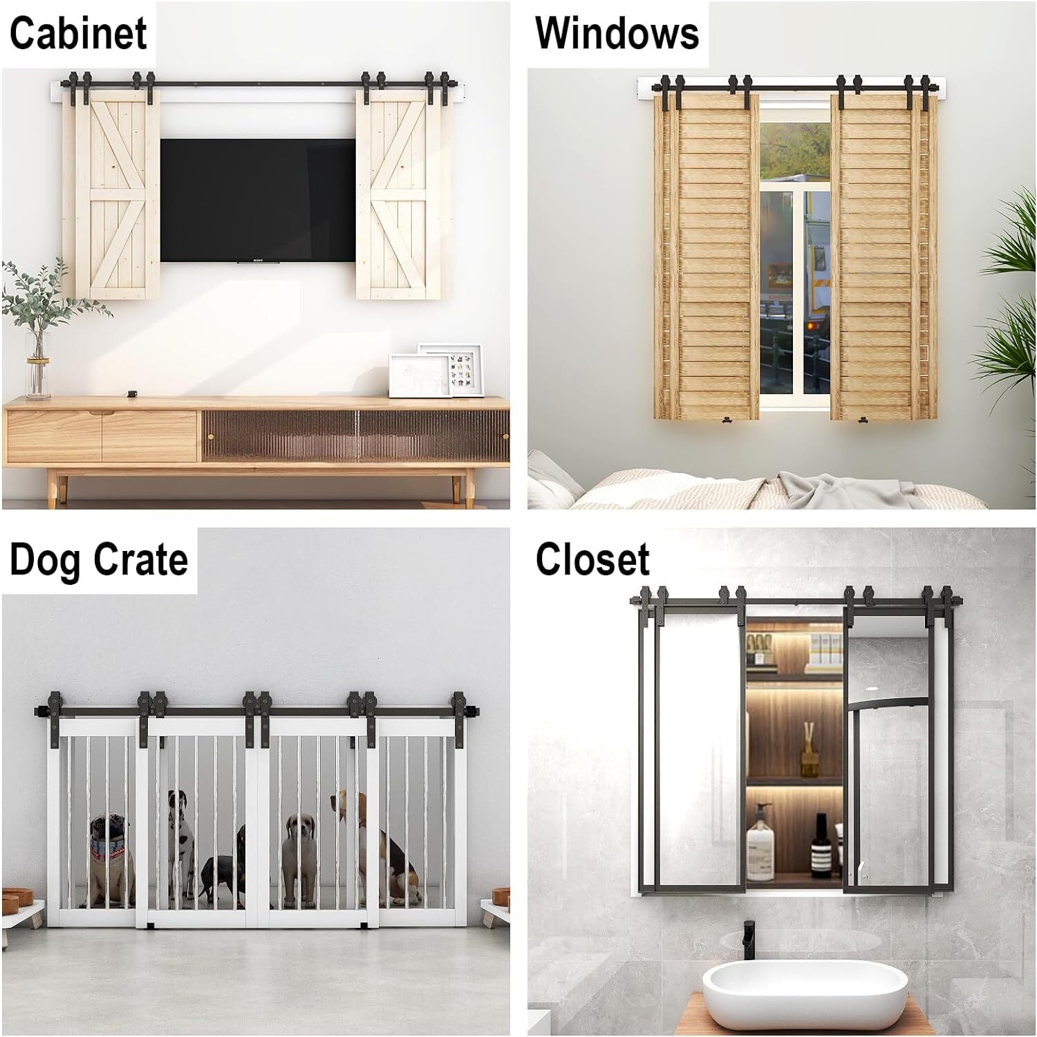 Super Mini Cabinet Bypass Sliding Barn Door Hardware Kit for 2/4 Door
